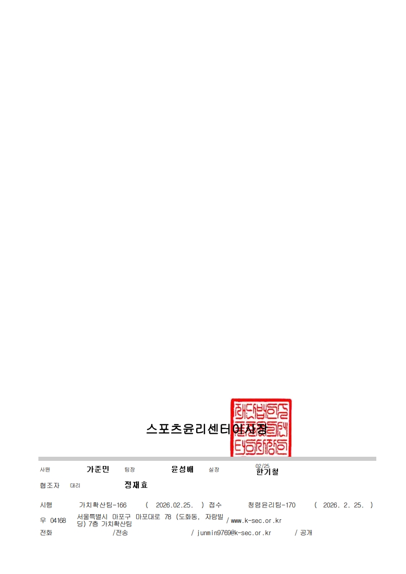 - 다음글대한궁도협회 신입직원 공개채용 최종 합격자 공고 26.02.24