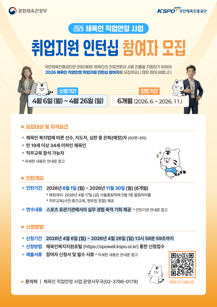 지원사업 : 2026년 체육인 직업안정 사업(지도자연수·인턴십)